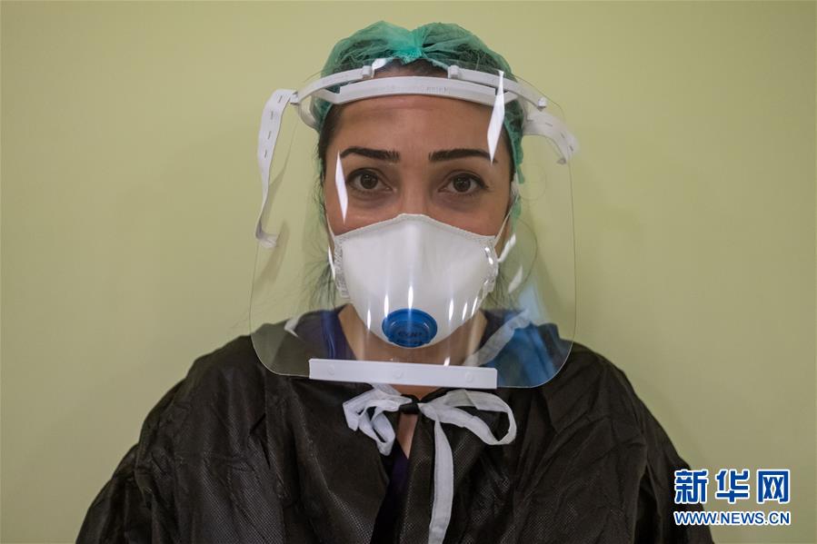 4月5日,在土耳其伊斯坦布尔,一名医护人员佩戴3D打印技术制作出来的防护面罩。新华社发(亚辛·阿克居尔 摄)