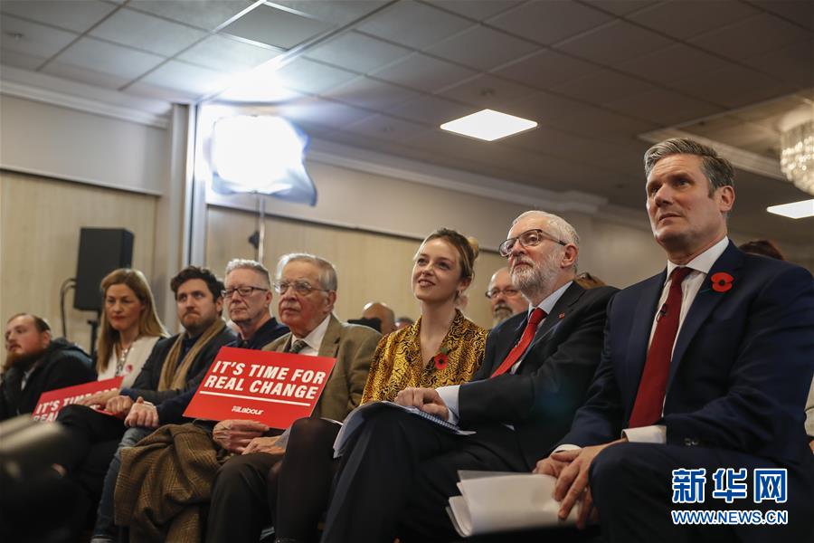 这是2019年11月5日,基尔·斯塔默(右一)在英国哈洛参加工党活动的资料照片。 新华社记者 韩岩 摄