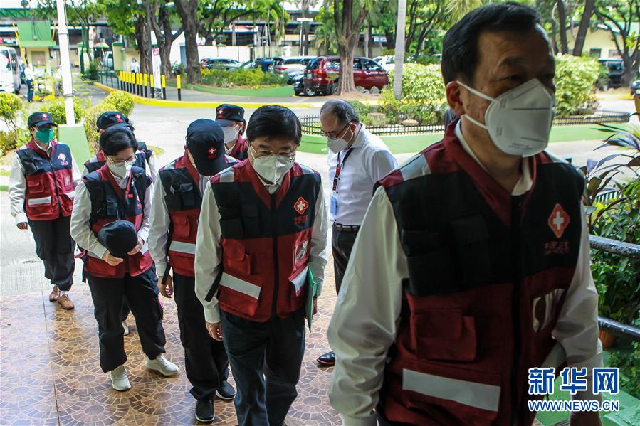 4月6日,在菲律宾首都马尼拉,中国抗疫医疗专家组成员到达菲律宾卫生部。 新华社发(乌马利摄)