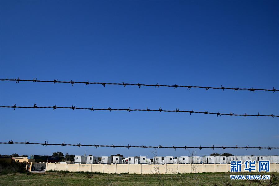 这是4月6日在马耳他南部的比尔泽布贾拍摄的难民营。 马耳他南部一座难民营5日因新冠疫情而实施封闭措施,目前已出现多个确诊病例。 新华社发(乔纳森·博尔格摄)