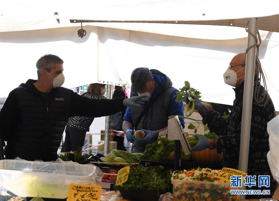 4月6日,在意大利首都罗马,人们戴着口罩在一处露天市场购买蔬菜。 意大利民事保护部门负责人、新冠病毒应急委员会专员博雷利6日表示,截至当天18时,意大利累计确诊病例增至132547例,比上一日增加3599例,新增病例连续两天下降。 新华社发(奥古斯托·卡萨索利摄)