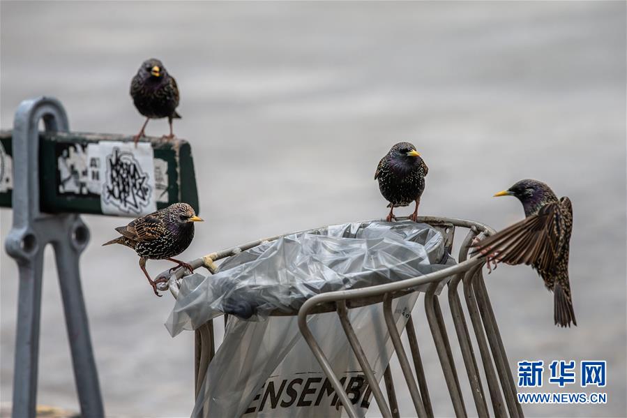 4月6日,在法国巴黎,鸟儿在路边抢食。 法国自3月17日起实施“禁足令”,要求民众留在家中,最大限度减少出行并避免与外界接触。“禁足令”实施期间,不少动物“溜达”到巴黎空荡无人的大街上。 新华社发(奥雷利安·莫里萨尔摄)