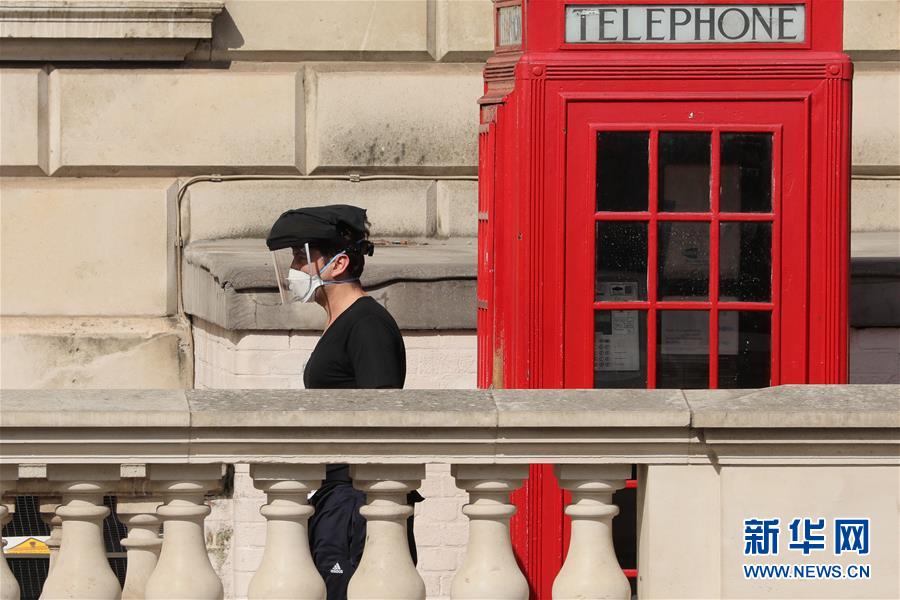 4月7日,在英国伦敦,一名戴口罩的男子从一个红色电话亭前走过。 当日,英国卫生部发布的新冠疫情数据显示,该国被确诊的人数累计达到55242例,与前一天相比增加3634例;死亡病例数攀升至6159例。 新华社发(蒂姆·爱尔兰摄)