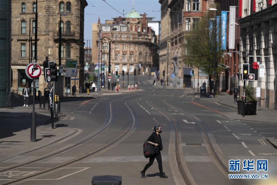 4月7日,在英国曼彻斯特,一名戴口罩的人在市中心穿行。 当日,英国卫生部发布的新冠疫情数据显示,该国被确诊的人数累计达到55242例,与前一天相比增加3634例;死亡病例数攀升至6159例。 新华社发(乔恩·休珀摄)