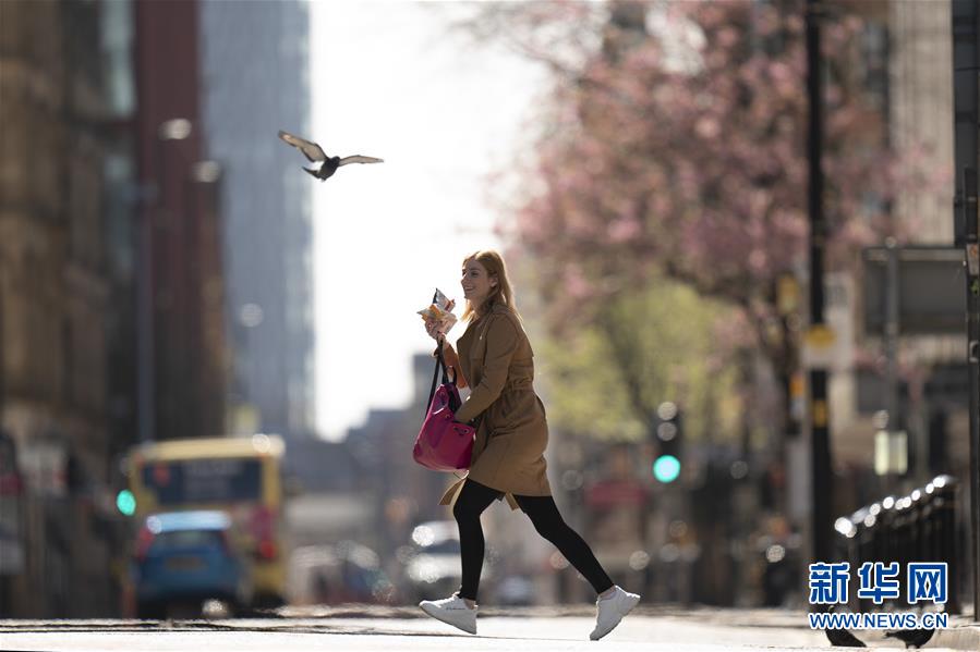 4月7日,在英国曼彻斯特,一名女子在市中心穿行。 当日,英国卫生部发布的新冠疫情数据显示,该国被确诊的人数累计达到55242例,与前一天相比增加3634例;死亡病例数攀升至6159例。 新华社发(乔恩·休珀摄)