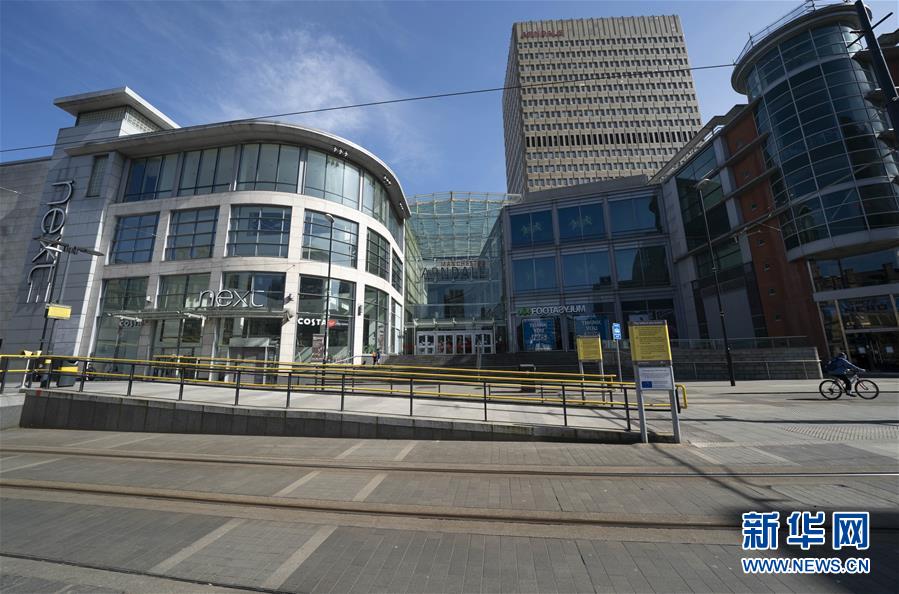 4月7日,英国曼彻斯特市中心行人寥寥。 当日,英国卫生部发布的新冠疫情数据显示,该国被确诊的人数累计达到55242例,与前一天相比增加3634例;死亡病例数攀升至6159例。 新华社发(乔恩·休珀摄)