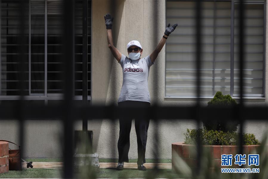 4月7日,在哥伦比亚波哥大一个小区内,一名居民在做操。 哥伦比亚7日累计确诊病例增至1780例。总统杜克6日说,哥政府采取的一系列应对疫情的措施已取得积极效果,现行的全国强制预防性居家隔离政策将延长至4月26日23时59分,学校继续停课至5月末。 新华社发(约翰·帕斯 摄)