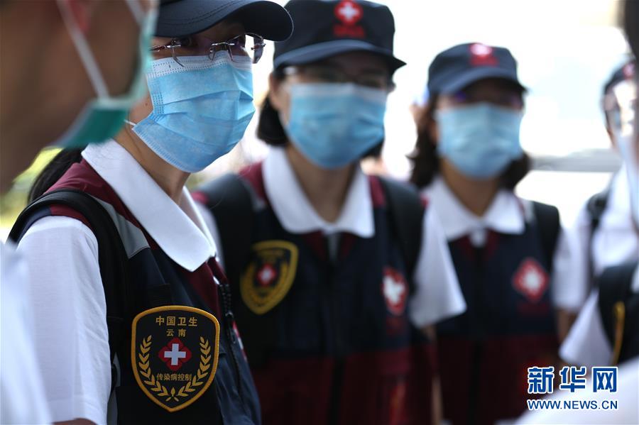 4月8日,中国政府派遣的抗疫医疗专家组抵达缅甸仰光国际机场。 中国政府派遣的抗疫医疗专家组8日抵达缅甸最大城市仰光,中方捐赠的一批防护用品、医疗设备和中成药等抗疫物资也随机抵达。 新华社发(吴昂 摄)