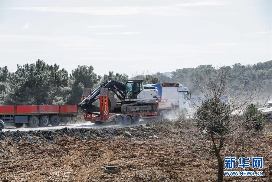 4月7日,在土耳其伊斯坦布尔省,施工人员开始建设方舱医院。 土耳其总统埃尔多安6日表示,将在45天之内,在伊斯坦布尔省建成两座方舱医院,每座医院都有约1000张床位。 新华社发(阿里·卡亚摄)