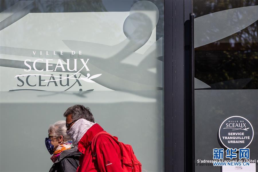 4月8日,在法国巴黎近郊索镇,人们戴口罩外出。 近日,包括尼斯在内的法国部分城市要求居民外出必须戴口罩。其中,巴黎近郊索镇要求十岁以上居民外出戴口罩,如暂时没有口罩,可以用围巾等遮挡面部。法国卫生总署署长萨洛蒙4月8日说,法国医院新冠死亡病例升至7632例,较前一日增加了541例。 新华社发(奥雷利安·莫里萨尔摄)