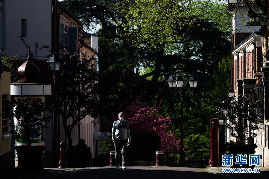4月8日,在法国巴黎近郊索镇,一名男子戴口罩外出。 近日,包括尼斯在内的法国部分城市要求居民外出必须戴口罩。其中,巴黎近郊索镇要求十岁以上居民外出戴口罩,如暂时没有口罩,可以用围巾等遮挡面部。法国卫生总署署长萨洛蒙4月8日说,法国医院新冠死亡病例升至7632例,较前一日增加了541例。 新华社发(奥雷利安·莫里萨尔摄)
