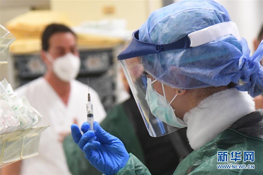 4月9日,在意大利博洛尼亚,医护人员在圣奥尔索拉—马尔皮吉医院工作。 新华社发(詹尼·斯基基摄)