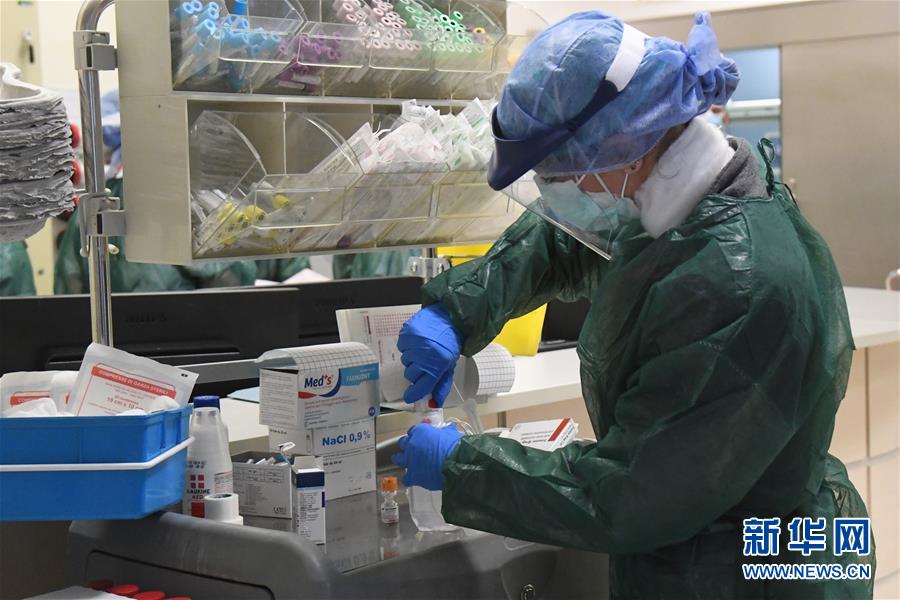 4月9日,在意大利博洛尼亚,医护人员在圣奥尔索拉—马尔皮吉医院工作。 新华社发(詹尼·斯基基摄)