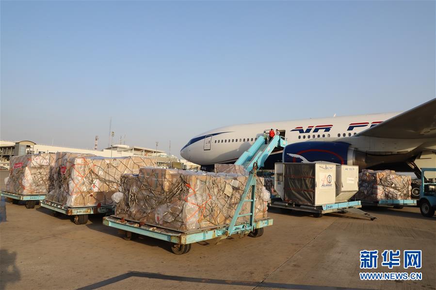 这是4月8日在尼日利亚阿布贾国际机场拍摄的援尼抗疫物资。 中国铁建集团赴尼日利亚防疫工作组当地时间8日下午乘包机抵达尼日利亚首都阿布贾。该工作组包括12名医护人员,部分医护人员具有新冠肺炎防疫和诊断经验。据中国铁建集团介绍,此次包机运送了该公司协助尼日利亚政府在中国采购的口罩、防护服等防疫物资,将移交给当地医院。 新华社发(姜宣摄)