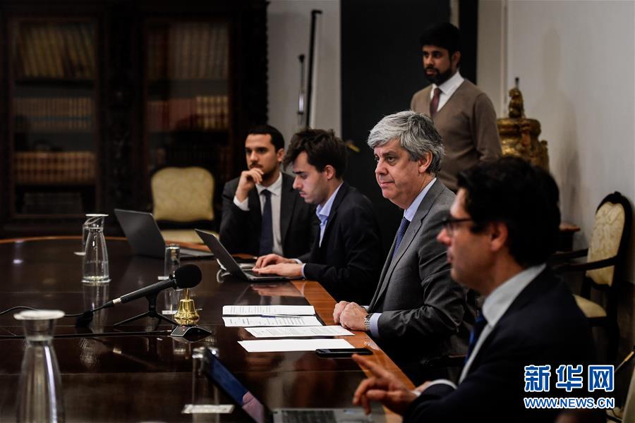 4月9日,欧元集团主席马里奥·森特诺(右二)在葡萄牙里斯本出席欧元集团视频会议新闻发布会。 欧盟成员国财长9日晚达成协议,同意为应对欧洲新冠疫情实施总额为5400亿欧元的大规模救助计划。 新华社发(欧洲理事会供图)