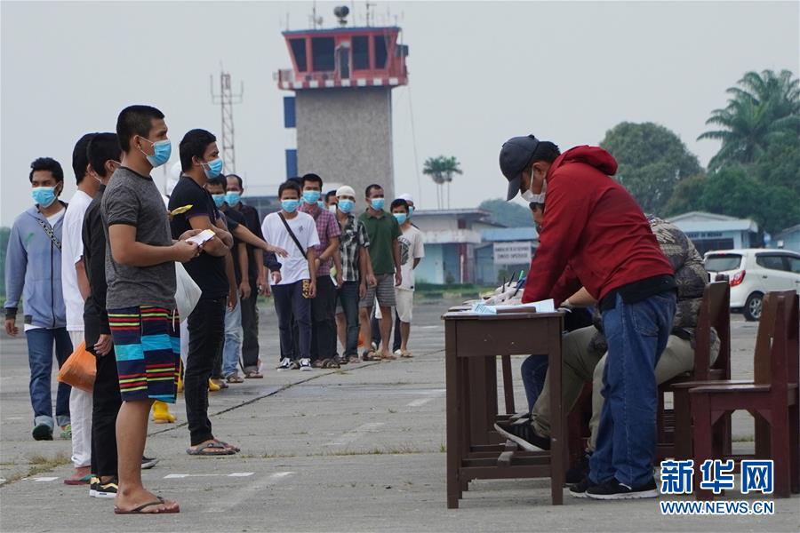 4月10日,在印度尼西亚北苏门答腊省一处空军基地,从马来西亚回国的印尼务工人员等待接受隔离观察。 据印尼媒体报道,印尼卫生部7日同意了雅加达地方政府关于实施大规模社交限制措施的请求,以更好地抗击新冠疫情。这些措施包括关闭学校和办公场所,限制社会文化、交通运输和宗教活动,以及仅允许开展有限的国防和安全活动。 新华社发(拉纳·普里玛摄)