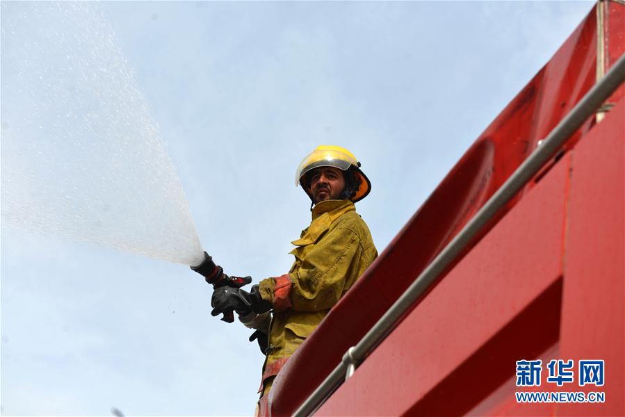 4月11日,在阿富汗坎大哈省,消防员向街道喷洒消毒液。 阿富汗公共卫生部11日说,该国新增34例新冠确诊病例,累计确诊病例555例。 新华社发(萨瑙拉摄)