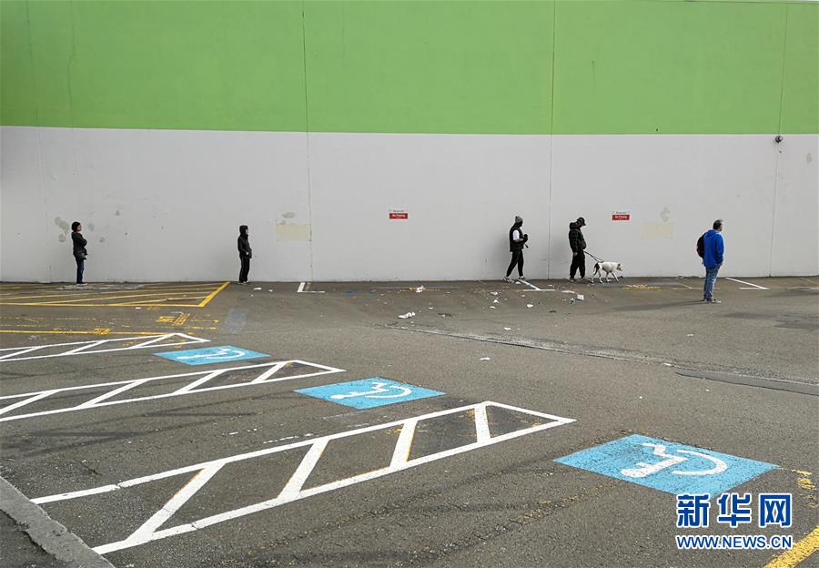 4月11日,在新西兰惠灵顿,人们保持较大距离排队等待进入超市。 新西兰卫生部11日公布的新冠疫情数据显示,该国新增确诊病例20例,累计确诊及疑似病例1312例。 新华社记者 郭磊 摄