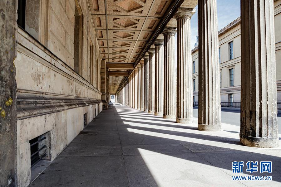 4月11日,德国首都柏林新博物馆前的长廊空无一人。 根据德国疾控机构罗伯特·科赫研究所11日晚间发布的最新数据,该国累计确诊病例升至117658例,死亡病例2544例。 新华社发(张平摄)