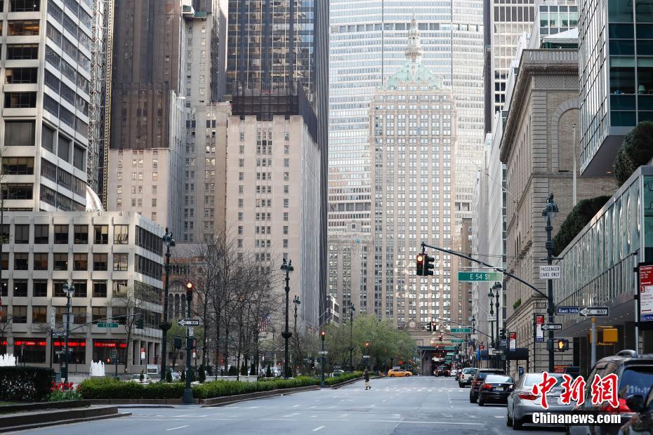 当地时间4月11日,受新冠肺炎疫情影响,宽阔的纽约公园大道行人寥寥。据美国约翰斯·霍普金斯大学发布统计数据,截至11日傍晚,美国累计新冠肺炎确诊病例已经超过520000例,其中纽约州确诊病例超过180000例。中新社记者 廖攀 摄