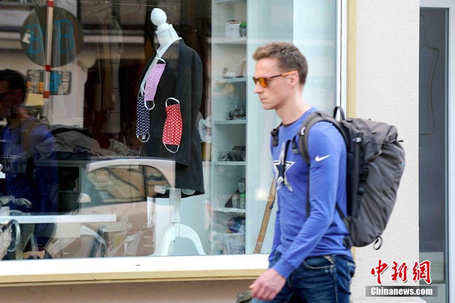 当地时间4月12日是德国复活节,由于实施中的严厉防疫措施,2020年的复活节德国禁止了有人群聚集的宗教活动、复活节集市,人们也不被允许外出旅行,这使得这一传统上仅次于圣诞节的节日变得异常冷清。图为路人经过柏林市中心一家开始为顾客自制口罩的裁缝店。中新社记者 彭大伟 摄