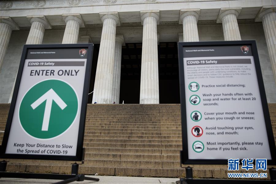 这是4月12日在美国首都华盛顿拍摄的林肯纪念堂前的新冠疫情提示牌。 美国约翰斯·霍普金斯大学12日发布的新冠疫情最新统计数据显示,美国确诊病例超过55万例,是全球确诊病例最多的国家。 新华社发(沈霆 摄)