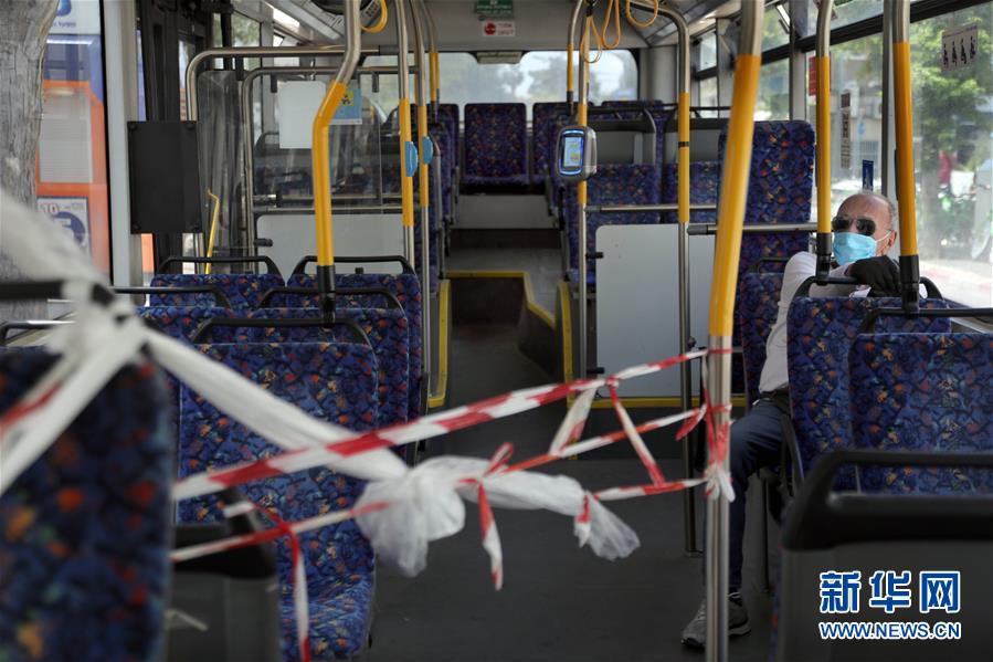 4月12日,在以色列特拉维夫,一名乘客佩戴口罩乘坐公交车。 以色列卫生部12日发布的数据显示,以色列当日新增新冠确诊病例402例,累计达到11145例。 新华社/基尼图片社