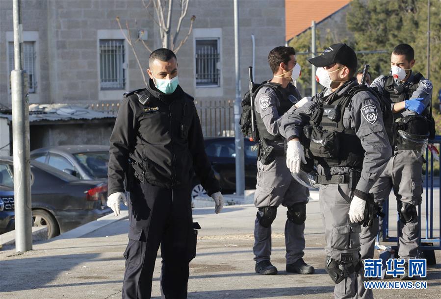 4月12日,在耶路撒冷梅阿谢阿里姆区,以色列警察执行封锁任务。新华社发(吉尔·科恩·马根 摄)