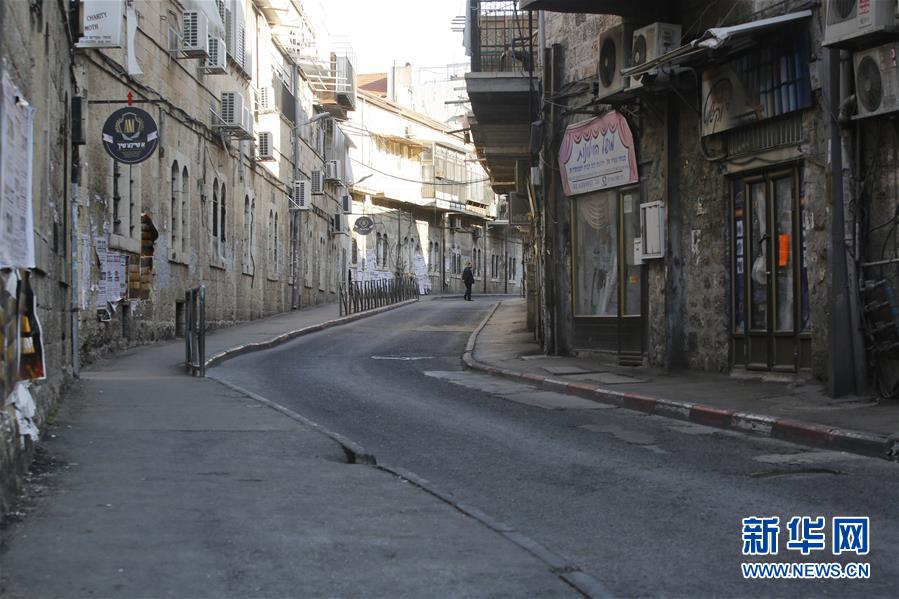 4月12日,在耶路撒冷已封锁的梅阿谢阿里姆区,街道上行人稀少。新华社发(吉尔·科恩·马根 摄)