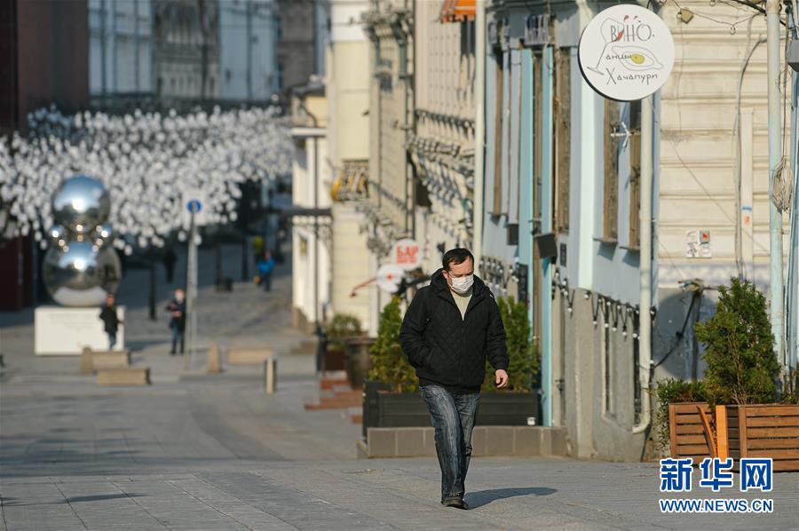 4月13日,在俄罗斯首都莫斯科,一名男子戴口罩出行。 根据俄罗斯防疫指挥部13日公布的最新数据,在过去24小时内,俄罗斯境内新增新冠确诊病例2558例,累计确诊病例增至18328例,死亡148例,治愈出院1470例。 新华社发(叶甫盖尼·西尼岑 摄)