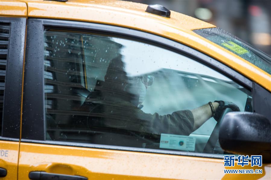 4月13日,在美国纽约,一名出租车司机佩戴口罩工作。 纽约州州长科莫12日签署行政命令,要求从15日晚间开始,纽约州所有关键行业员工在上班期间与公众接触都必须佩戴口罩,其口罩由雇主提供。 新华社发 (郭克摄)