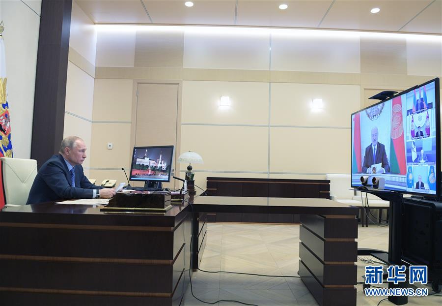4月14日,在位于俄罗斯莫斯科州的新奥加廖沃总统官邸,俄罗斯总统普京出席欧亚经济委员会最高理事会关于新冠疫情的视频会议。 俄罗斯总统普京14日在欧亚经济委员会最高理事会关于新冠疫情的视频会议上表示,国际社会只有团结起来共同努力,才能有效抗击疫情。 新华社/卫星社