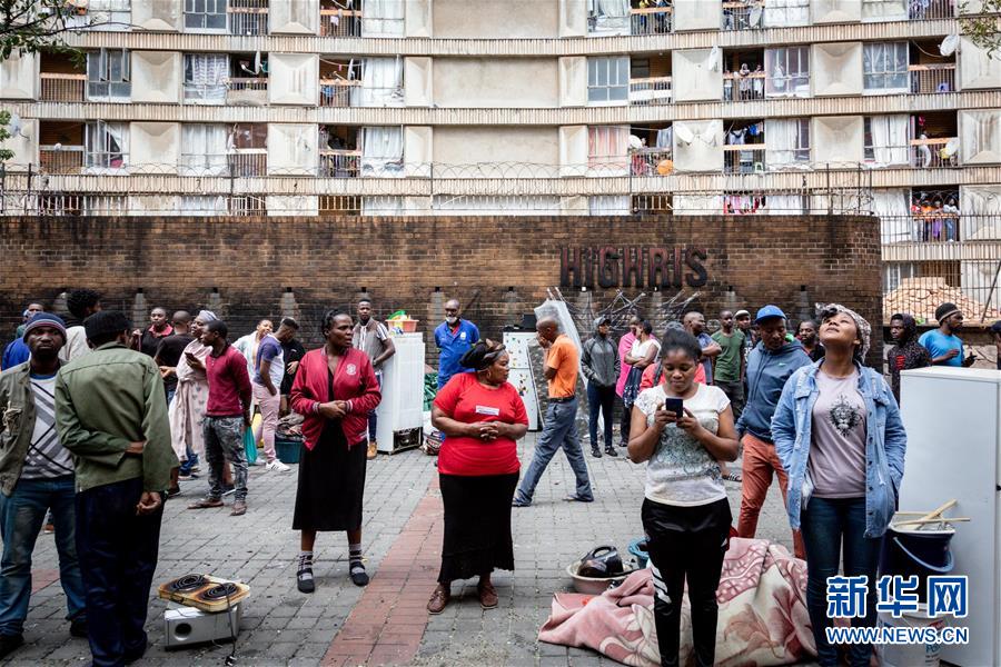 4月16日,在南非约翰内斯堡,居民因突发火灾来到室外空地等待救援。新华社发(耶希尔摄)