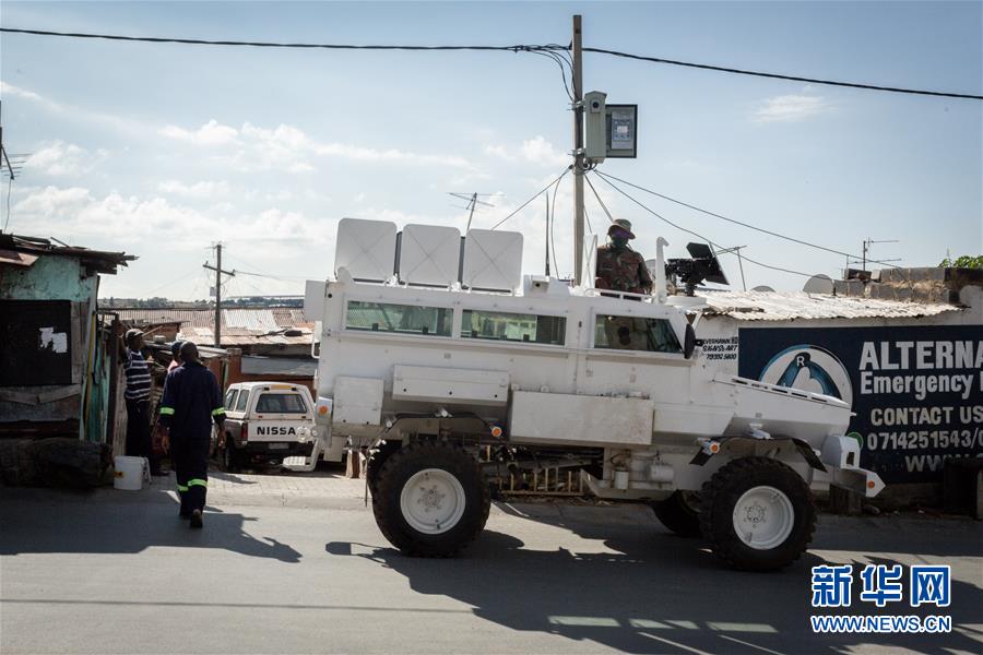 4月16日,在南非约翰内斯堡,军警联合巡逻队在街头执勤。新华社发(耶希尔摄)