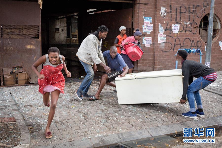 4月16日,在南非约翰内斯堡,居民因突发火灾跑向室外。新华社发(耶希尔摄)