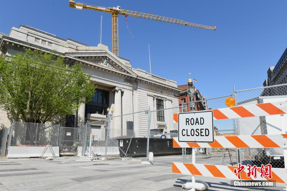 当地时间4月16日,华盛顿市区一处施工中的路口。中新社记者 陈孟统 摄