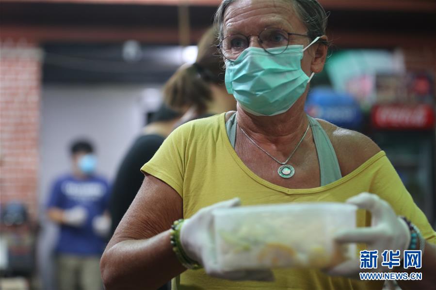 4月12日,在位于尼泊尔首都加德满都旅游集散地泰米尔的中华面馆内,一名工作人员准备将食物送给旅客。新华社记者 周盛平 摄