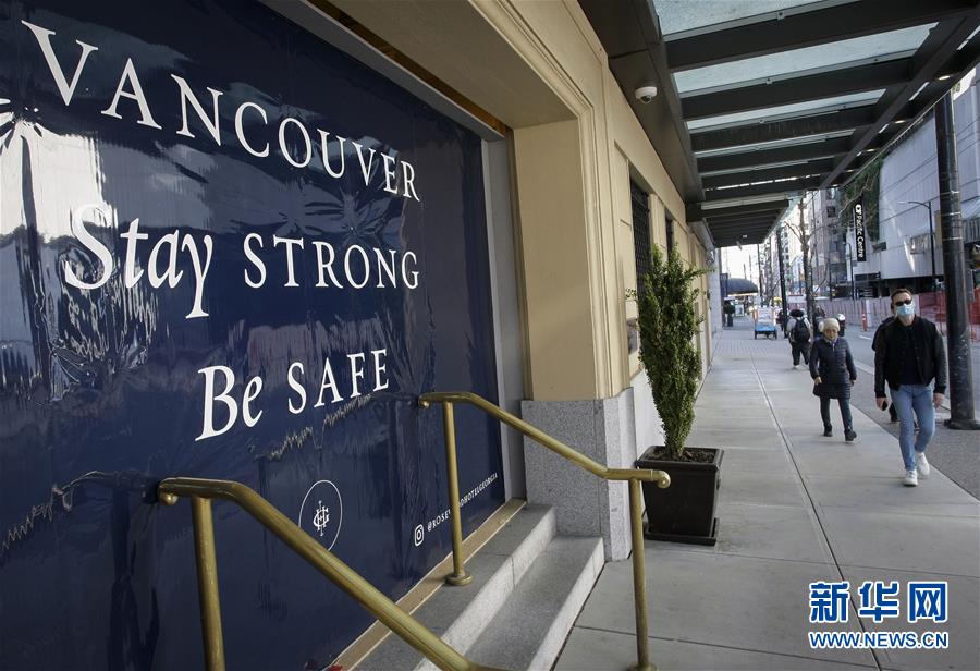 4月16日,在加拿大温哥华,行人走过一家关闭的酒店。新华社发(梁森摄)
