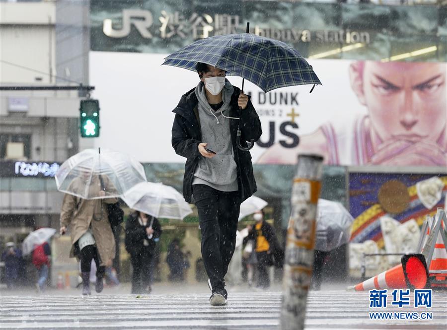 4月18日,在日本东京,行人戴口罩走在涩谷街头。新华社/共同社