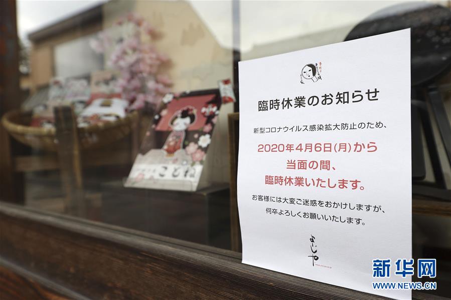 4月18日,在日本京都,一间商铺贴出了暂时停业的告示。新华社/共同社