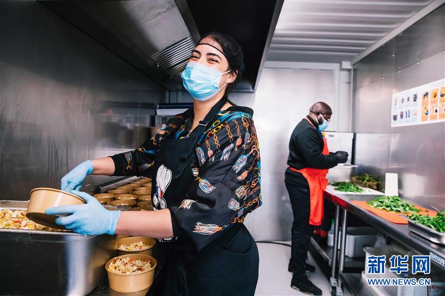 4月15日,志愿者在法国巴黎王子球场的厨房内制作餐食。新华社发(巴黎圣日耳曼俱乐部供图)