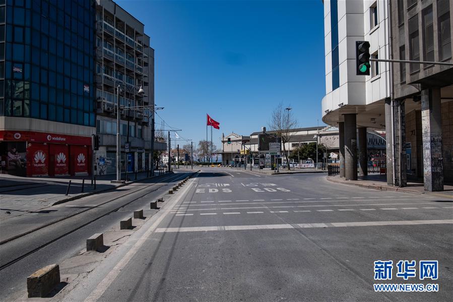 4月18日,在土耳其伊斯坦布尔,街头空无一人。 新华社发