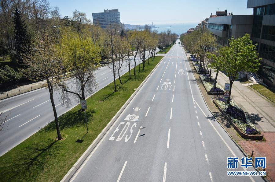 4月18日,在土耳其伊斯坦布尔,道路上车辆寥寥。新华社发