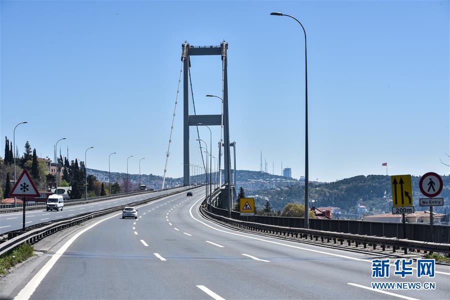 4月18日,在土耳其伊斯坦布尔,道路上车辆寥寥。 新华社发