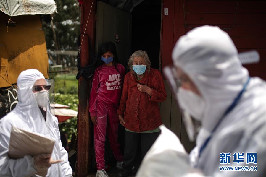 4月19日,在哥伦比亚首都波哥大,志愿者走访低收入社区了解防疫物资需求。新华社发(约翰·帕斯摄)
