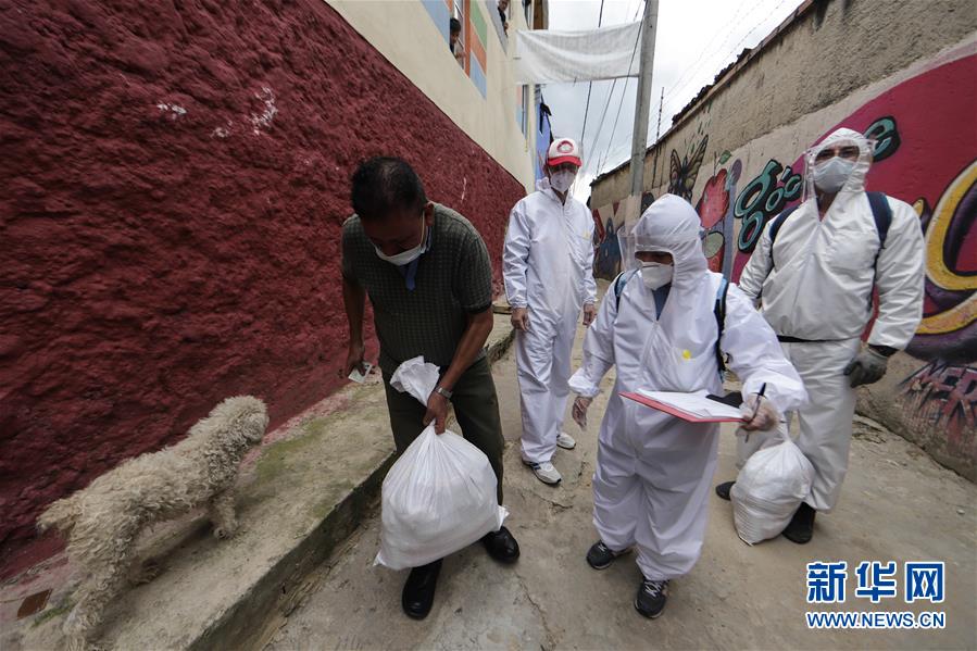 4月19日,在哥伦比亚首都波哥大,志愿者走访低收入社区了解防疫物资需求。 新华社发(约翰·帕斯摄)