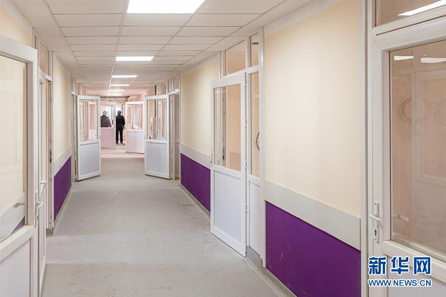这是4月18日拍摄的努尔苏丹市应急传染病医院病房楼道。 新华社发