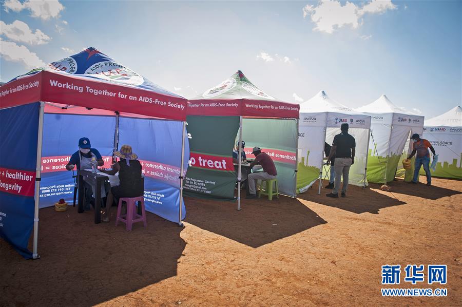 4月21日,在约翰内斯堡近郊,市民前来进行检测。 新华社发(希拉兹·穆罕默德摄)