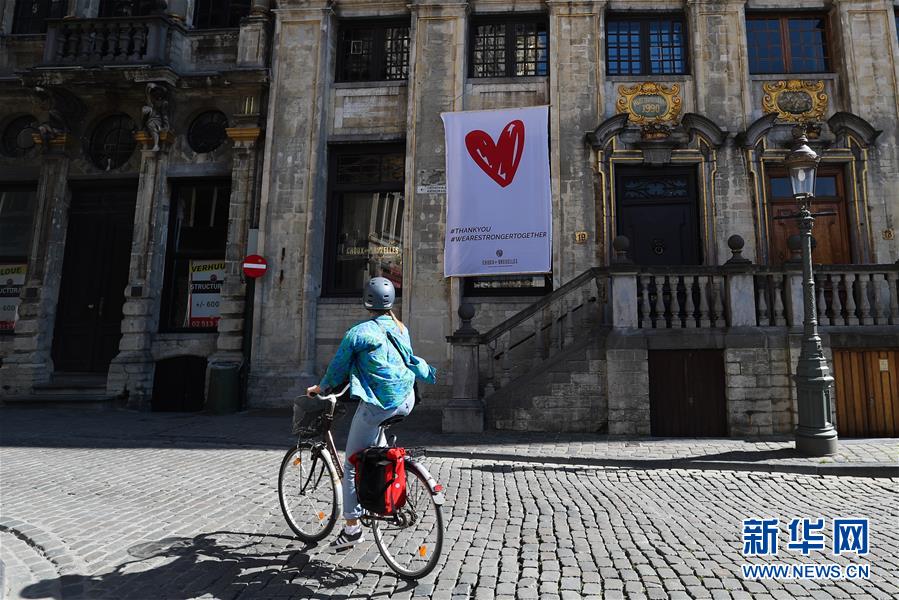 4月21日,在比利时布鲁塞尔大广场,一名女子骑车经过一家已经关门的老字号餐馆。 比利时国家公共卫生研究所21日发布公报说,比利时新冠肺炎确诊病例累计已达40956例。 新华社记者 郑焕松 摄