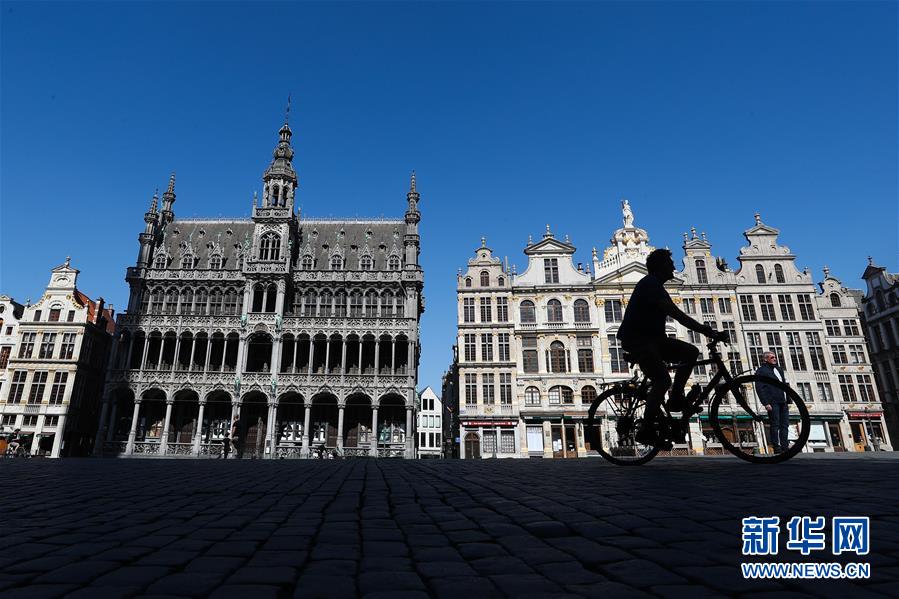 4月21日,一名男子骑车经过比利时布鲁塞尔大广场。 比利时国家公共卫生研究所21日发布公报说,比利时新冠肺炎确诊病例累计已达40956例。 新华社记者 郑焕松 摄